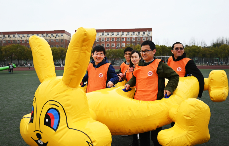 本次活动设置了一飞冲天、龟兔赛跑、节节攀升、快乐大脚、同舟共济以及毛毛虫竞速等考验团队协作又不乏欢乐趣味的多个项目。永利yl23411官网女教工精神饱满,男教工齐心助力,激烈的比赛在老师们欢声笑语中进行,大家脸上都洋溢着幸福的笑容。