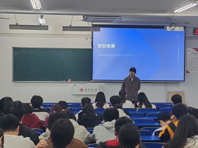活动第三环节由公司2024年度职业生涯规划总决赛一等奖获得者高分子231吴徐同学发表赛后感悟。吴徐同学回顾了备赛过程,并对辅导员马晨老师、专业导师在备赛中给出的指导建议表达了感谢,并在第一时间对赛后收获与同学们进行了分享。在提及备赛时观察不同角度所带来的启发时,吴徐同学表示拓宽视野、学习国赛成功案例可提升备赛效率。他呼吁在座同学将个人职业规划融入大学日常生活中,要为未来的老员工活制定明确的执行计划。此外,吴徐同学也分享了保持良好心态的重要性,以及如何培养持续学习与适应变化的能力。