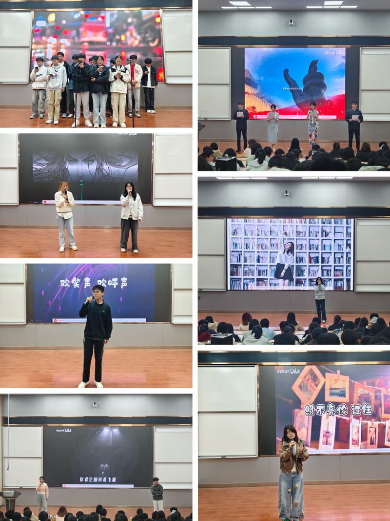 本次新生才艺大赛内容丰富,涵盖歌曲演唱、诗歌朗诵等形式。歌曲表演中,参演同学凭借扎实的唱功,演绎了多首风格各异的曲目,或激昂高亢,或温柔舒缓,赢得台下观众阵阵掌声;朗诵环节里,表演者们精神饱满,情感真挚,通过富有感染力的表达,传递出文字背后的力量,引发在场师生的共鸣。