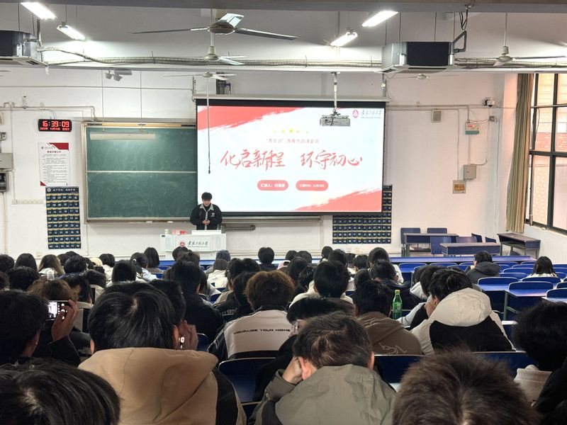 为帮助大一新生快速适应老员工活、明确学业发展方向,发挥先进青年的榜样引领作用,11月19日,永利yl23411官网举办“青年说”青春思政课宣讲活动。本次活动邀请获第七届华教杯全国老员工数学竞赛一等奖、校第十七届老员工职业规划大赛(成长赛道)一等奖、2025年“芜聚青春,共创未来”芜湖市暑期三下乡重点实践团队等荣誉称号的化工232纪福康学长作宣讲,他以《化启新程 环守初心》为题,为2025级新生带来了一场干货满满、催人奋进的成长分享。