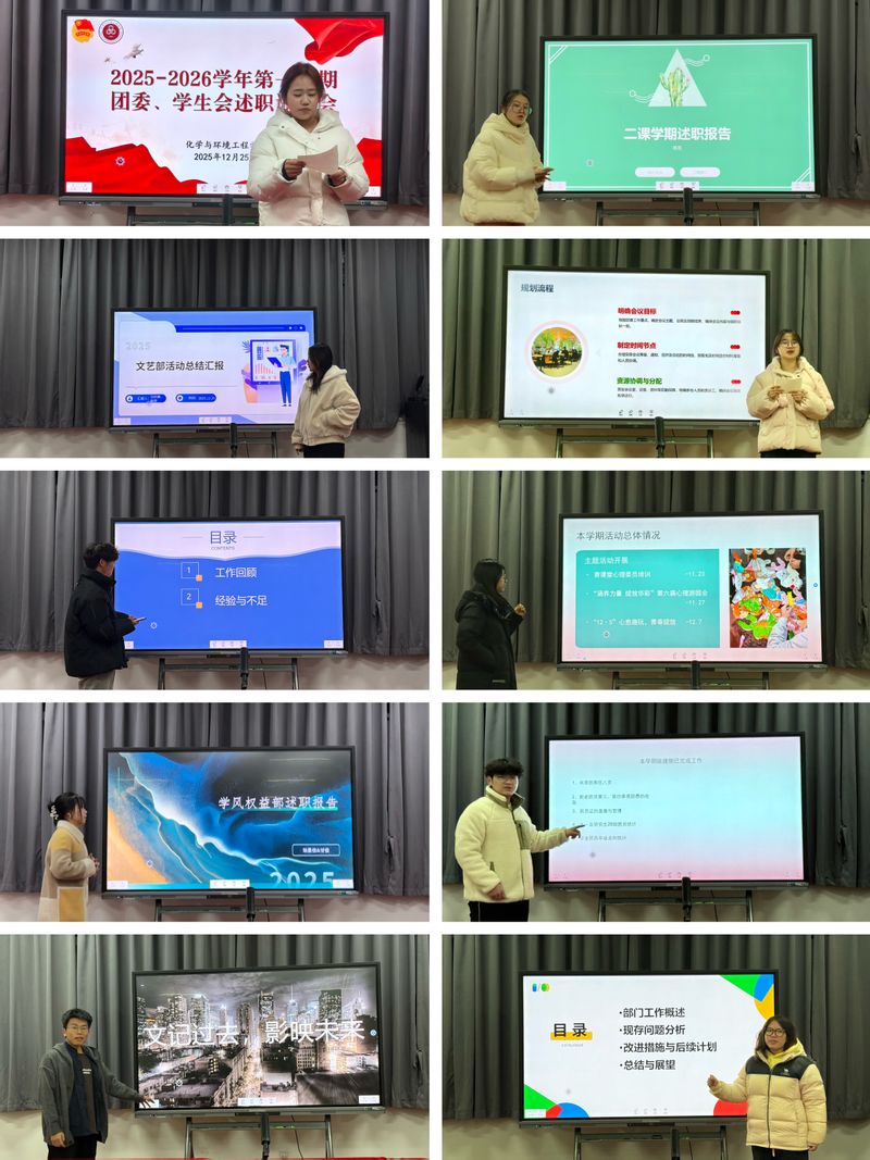 评议会上,公司团委、员工会各部门负责人依次上台,围绕本学期履职情况,结合PPT展示进行现场述职。述职内容紧扣思想引领、组织建设、学术科创、文化体育、权益服务等核心职能,阐述了工作中的经验积累、现存不足,并提出了改进措施与未来工作展望。一张张活动照片、一组组详实数据、一项项荣誉证书,见证了团学组织在引领青年思想、繁荣校园文化、助力员工成长、维护员工权益等方面付出的努力与取得的扎实成效。